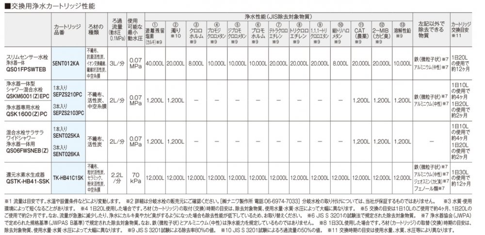 ●カートリッジ交換目安約1年(1日30Lの使用の場合)