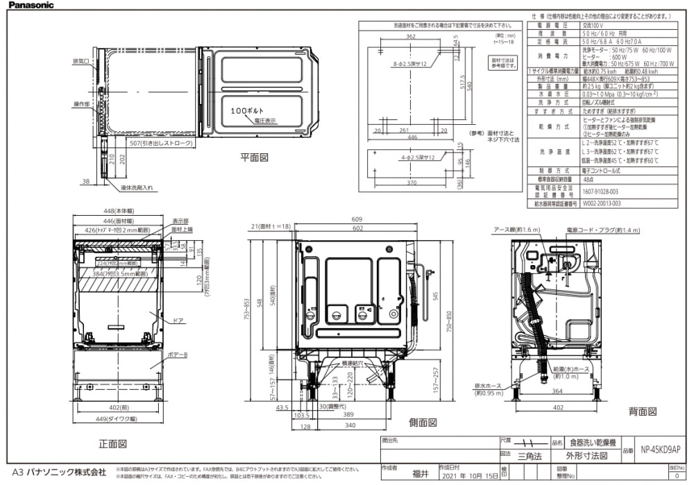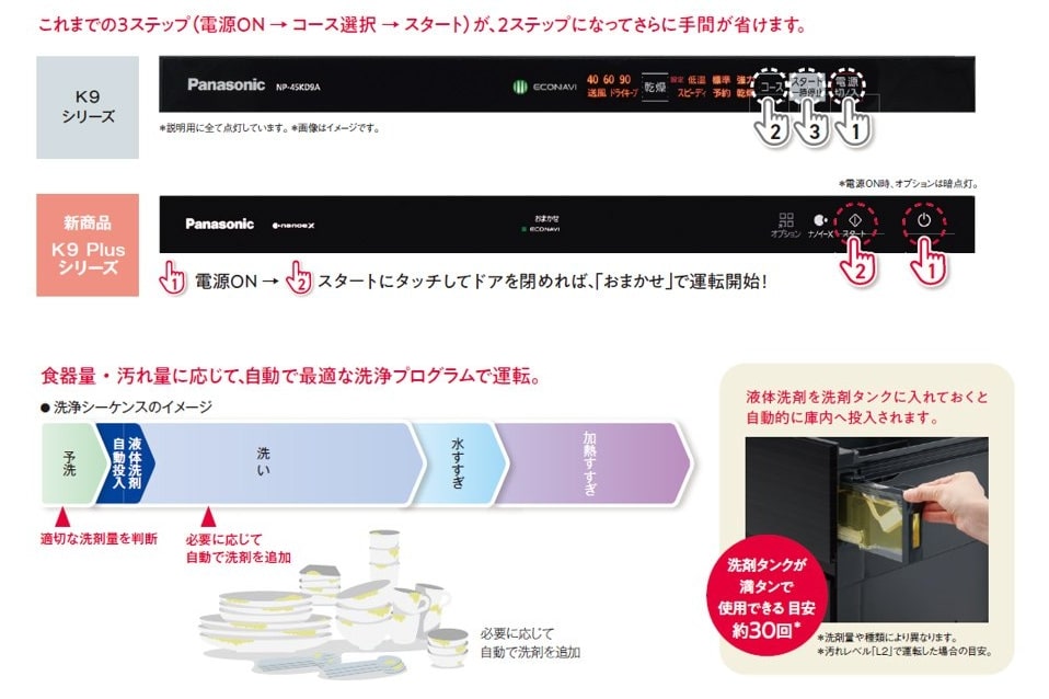 食器洗い乾燥機 パナソニック製(Panasonic)NP-45KD9AP 幅45cm ディープタイプ 深型大容量 K9Plusシリーズ 【扉材別売】