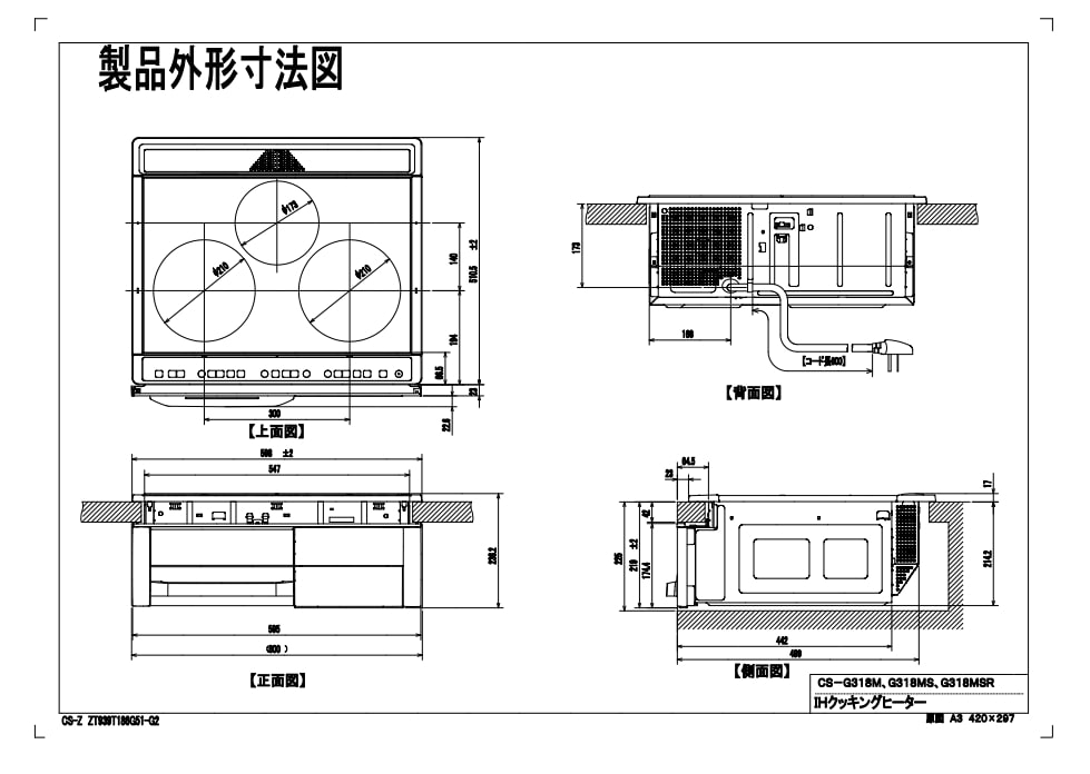 IHクッキングヒーター 三菱電機製(MITSUBISHI)CS-G318MSR G318Mシリーズ シルバー 間口60cm 2口IH+ラジエントヒーター