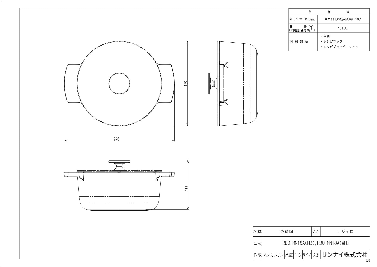 【同梱物】内網、取扱説明書、レシピブック、アプリガイド