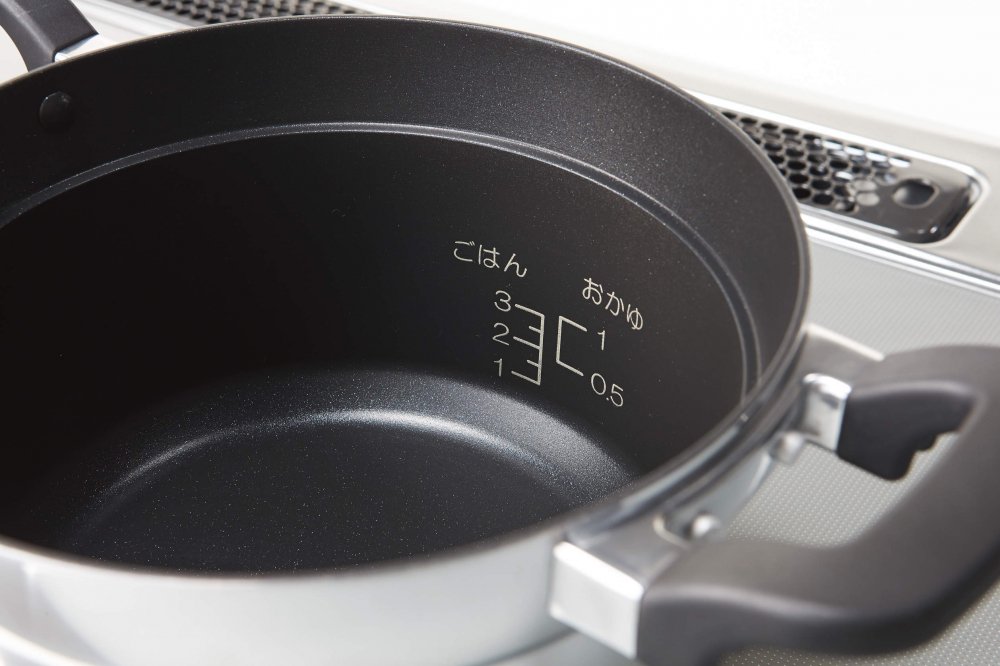 内側には水加減が分かる目盛り付き。炊きこみご飯にもおすすめです。