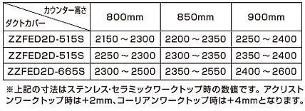 ダクトカバーをお選びいただく際は表を参考にしてください。