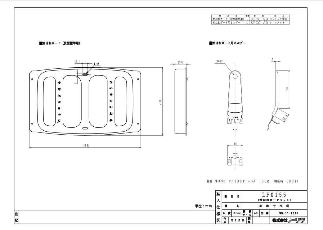 オプション ノーリツ製(NORITZ)LP0155 油はねガード 標準グリル用