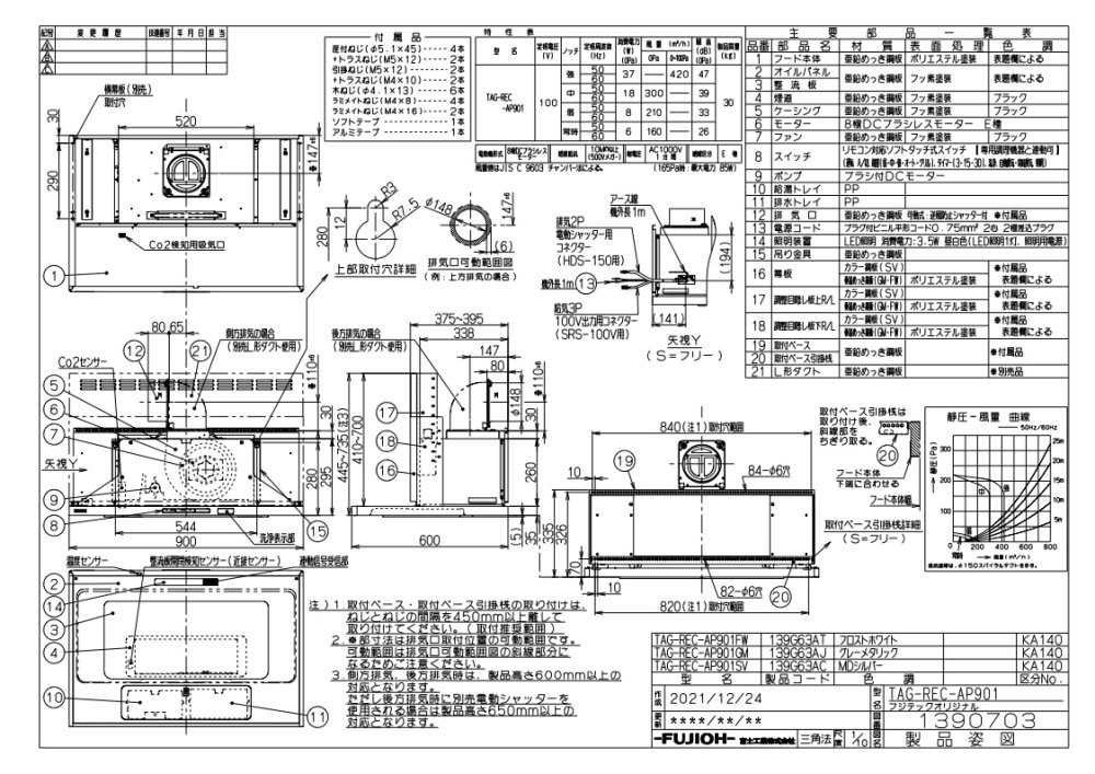 レンジフード 富士工業製(Rinnai)TAG-REC-AP901FW 間口90cm フロストホワイト TAGシリーズ プレミアム クリーンフード 上幕板付き