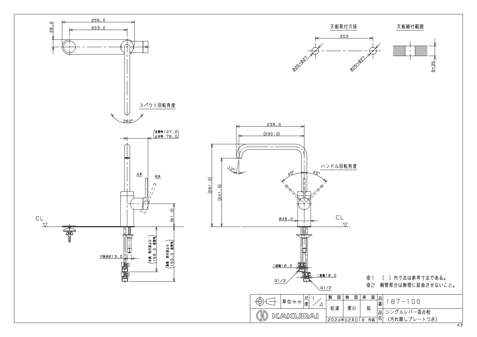 キッチン水栓 カクダイ製(KAKUDAI)187-100 シングルレバー混合栓(台付・2穴・汚れ隠しプレートつき)