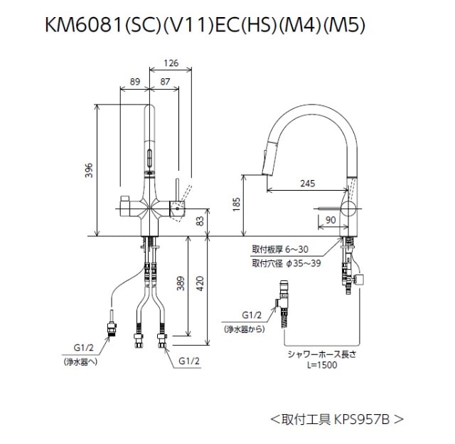 浄水器 一般地用 KVK製(KVK)KM6081VECM4 ビルトイン浄水器用シングルシャワー付混合栓 浄水カートリッジセット別売 マットホワイト