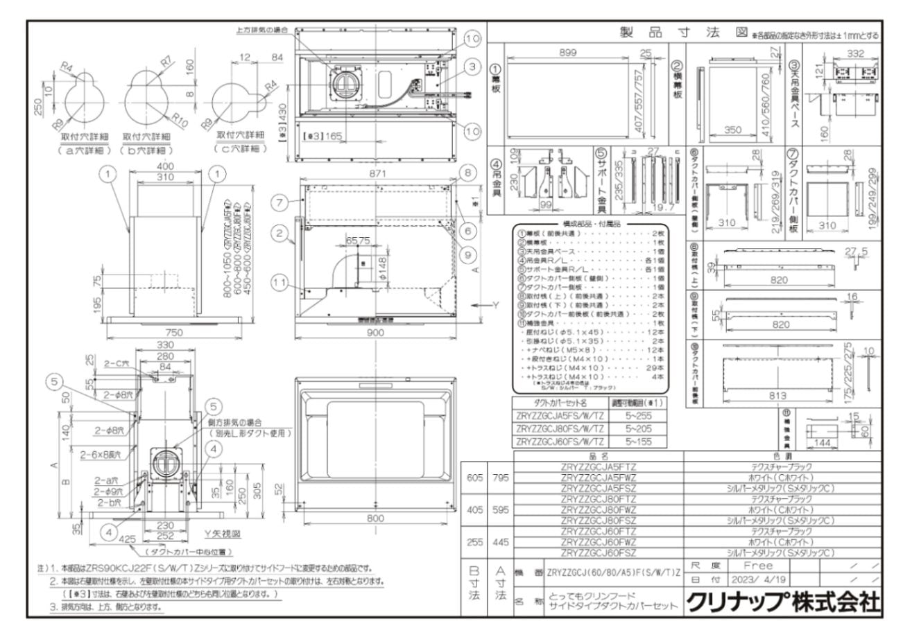 ・800~1050用 (ダクトカバー品番:ZRYZZGCJA5FTZ)
