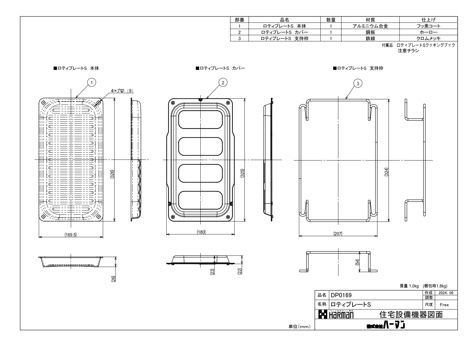 オプション ノーリツ製(NORITZ)DP0169 ロティプレートS